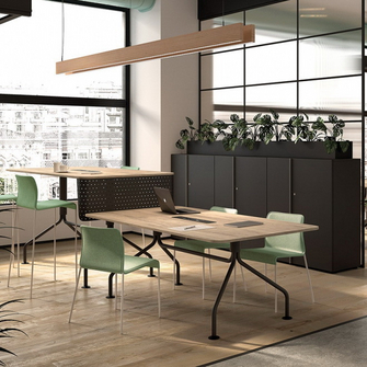 Table de réunion multifonctionnelle, composé d'un plateau en mélaminé 19mm coloris à choix selon gamme, bordure en matière synthétique ABS assortis soit arrondis ou angles vifs.