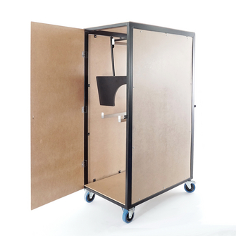 Face ouverte côté timon, fermés de chaque côté et dessus, face avant avec porte cadenassable.