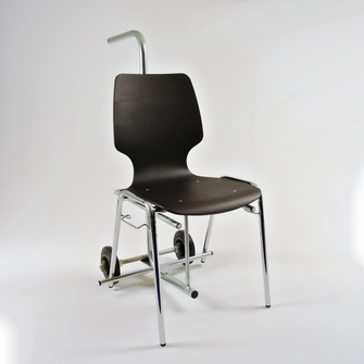 Chariot mobile pour chaises empilables, bâti métallique, surface de finition zinguée, roues en caoutchouc noir. Spécificité:-disponible pour tout type de chaise