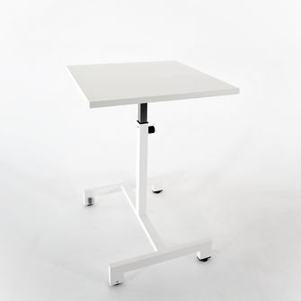 surface de travail monoplace, plateau de 19 mm, contreplaqué de stratifié selon collection MG, chants bordés ABS de 2 mm, plateau fixe, surface plane. Bâti monté sur une structure en T renversé asymétrique, base de 56 cm en profilé de 50x30 mm avec repose-pieds et une coulisse verticale de 50x50 mm. Système télescopique Easy-lift pour une élévation en douceur et une poignée de serrage pour stabiliser la hauteur. Supports au sol, 2 sous-pieds de nivellement à l'arrière et 2 roulettes souples en santoprene (TPE) intégrées avec freins.
